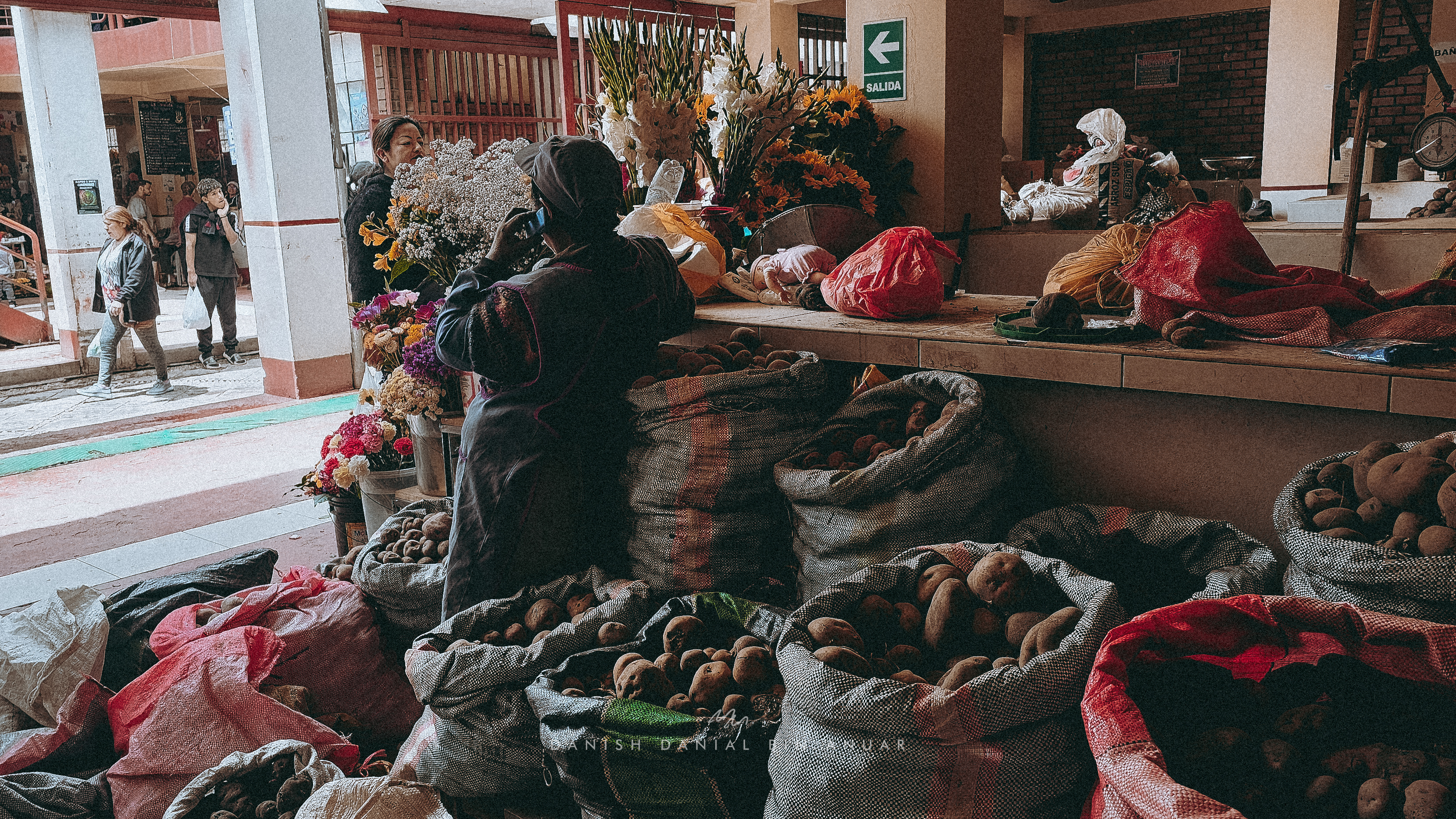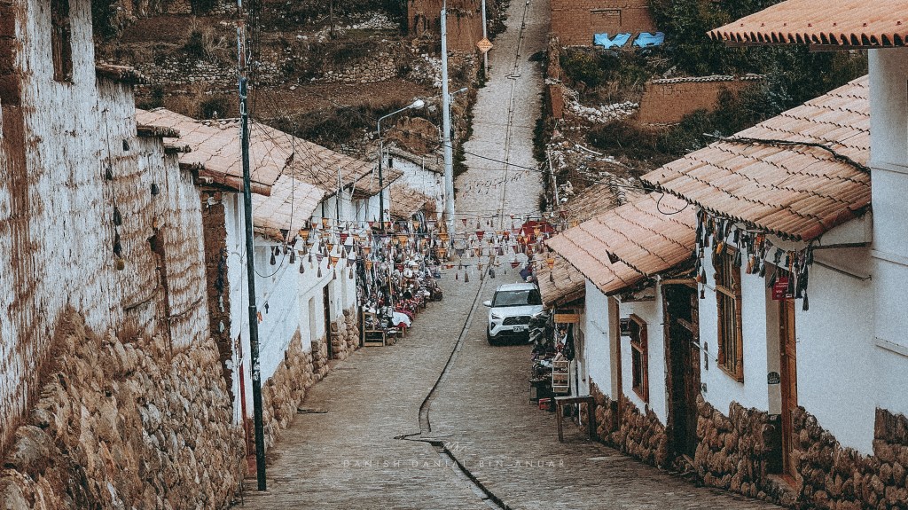 We made our way back to Ollantaytambo to catch an evening taxi ride to Pisac. I was knocked out just a couple of minutes in. Driving here is crazy anyway, and I’ve gotten used to that, but I was suddenly woken up by our driver slamming the accelerator. I looked outside the window, and we were chased by a pack of dogs. Anyway, we spent a night in Pisac, a modestly sized town at an elevation somewhere between Cusco and Ollantaytambo – so it was a perfect stopover to acclimatise. We explored the town for a bit – we visited the Artisan Market, a wet market, and aimlessly went in between the different alleys. There wasn’t much hustle and bustle in the Artisan Market, it felt like we had the place mostly to ourselves. There were tons of shops selling all kinds of art including paintings as well as traditional Incan-wear, bags and stuff of that sort.